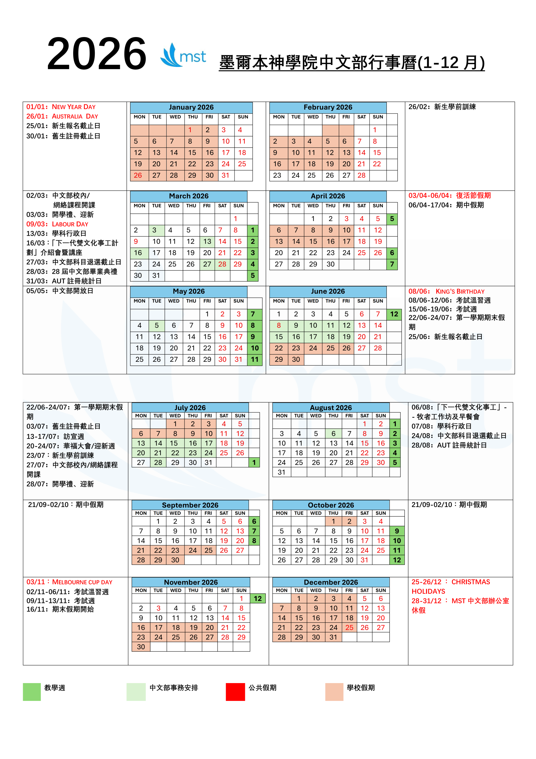 教學週: 3 月 2 日至 6 月 5日